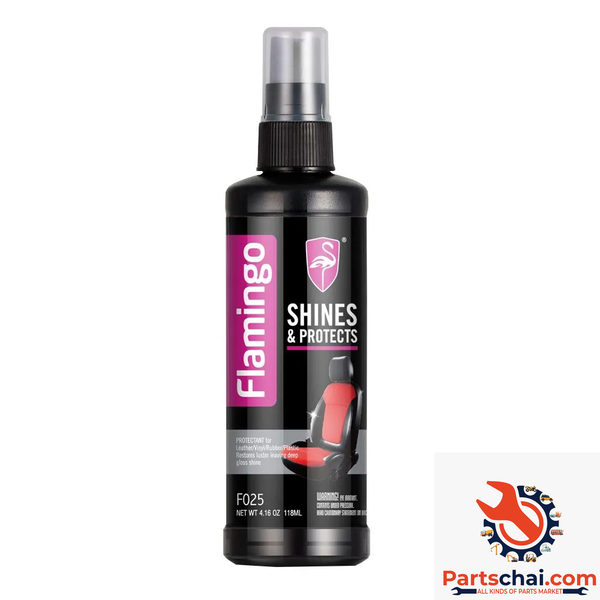 Shines & Protects Protectant’s unique polymer silicone formula penetrates the surface to shine and protect vinyl, rubber, and plastic. Flamingo shines & protects and helps protect surfaces from fading and cracking by reducing ultraviolet light while bringing out color, and restoring luster and shine. Protects against abrasion. Reduces static electricity to help reduce dust and dirt attraction! If less shine is desired, lightly buff with a damp cloth.
