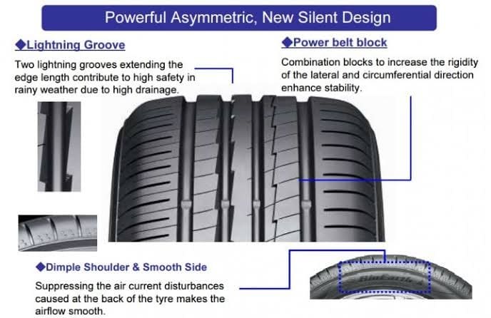 Featuring a asymmetrical tread pattern, the two sides of the tyre work in unison to provide a top performance. The BluEarth-A AE50’s also employs a “noise-controlled pitch” that contributes to a quieter ride by suppressing the incidence of uneven tyre wear.