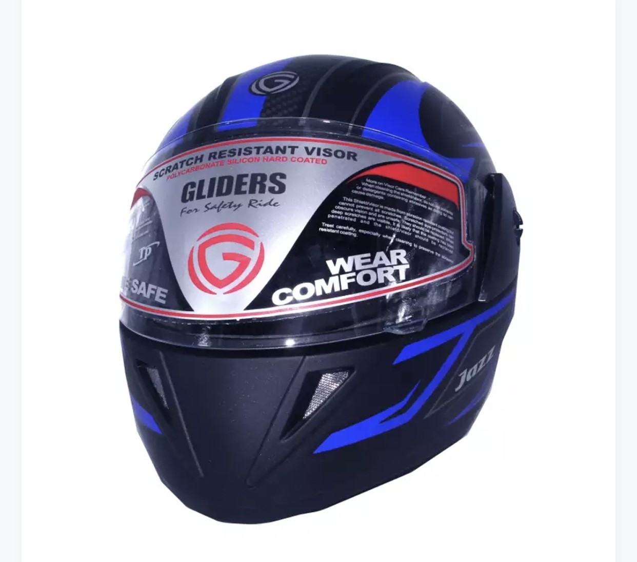 Product details of GLIDER Jazz D8 Full Face Helmet -Matt Black Blue